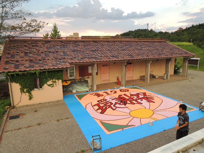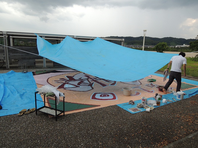 今日の創作活動は、一時中断していた垂幕の色塗りでした。