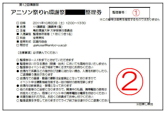 この整理券だけでは入場する事が出来ません。以下の手順・方法を守った上でご入場下さい。